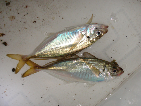 開始早々、釣り坊主にアジがヒット!‥しかーし、またしても後が続きません