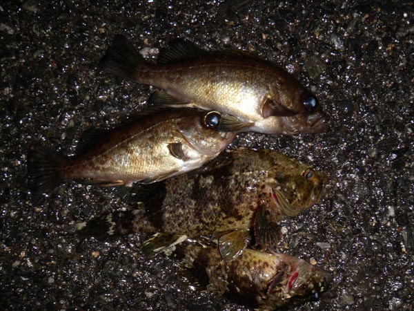 師匠の方はというと、サクサクとチビメバルを5匹。その内の2匹はミノーで釣上げていました。(ミノーでメバルが釣れるのは
