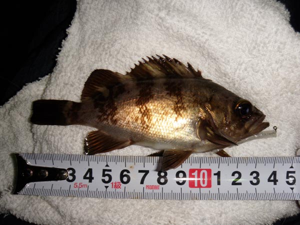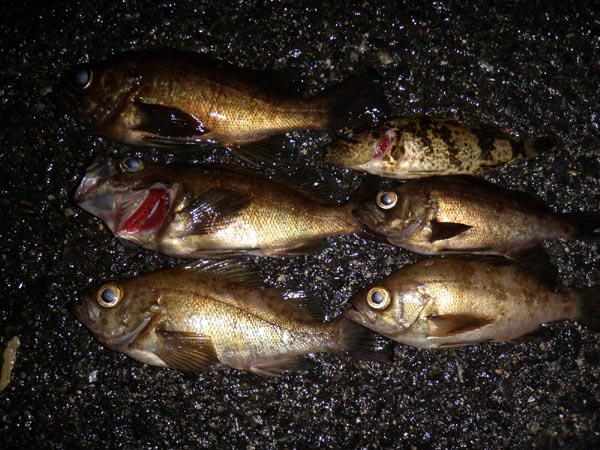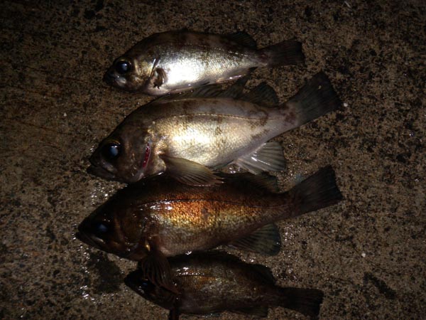 師匠の方はというと、サクサクとチビメバルを5匹。その内の2匹はミノーで釣上げていました。(ミノーでメバルが釣れるのは